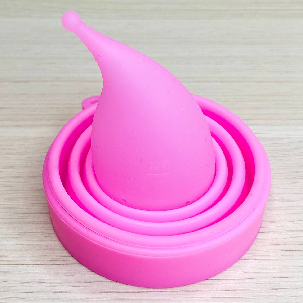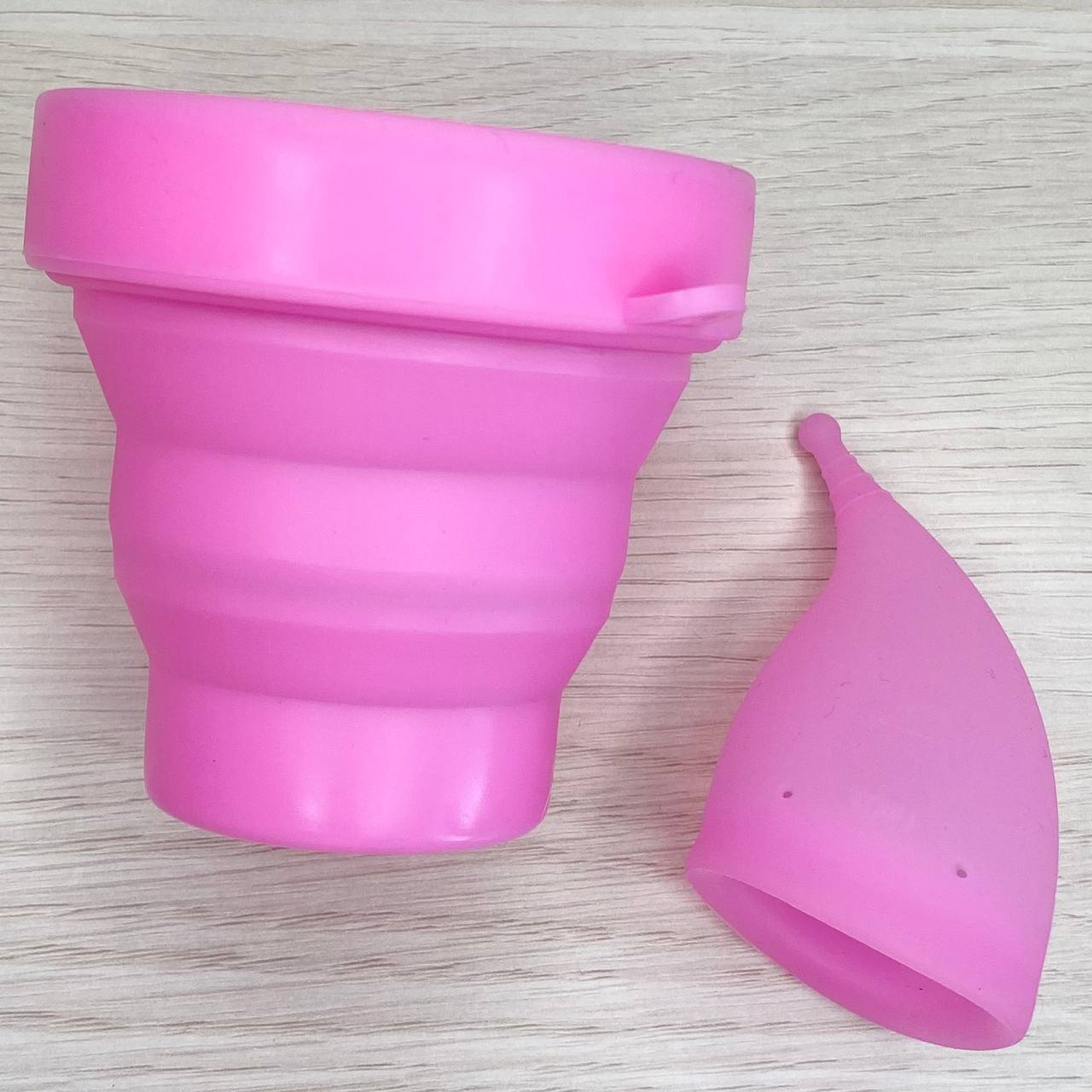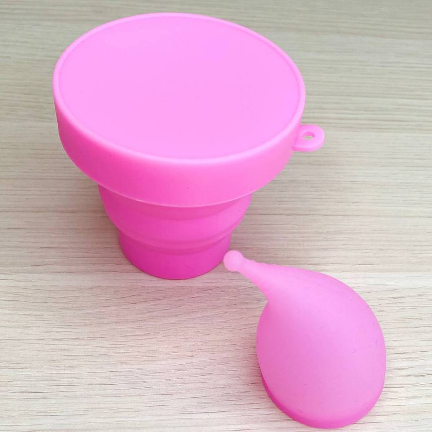 Силиконовый складной стакан с менструальной чашей в комплекте.