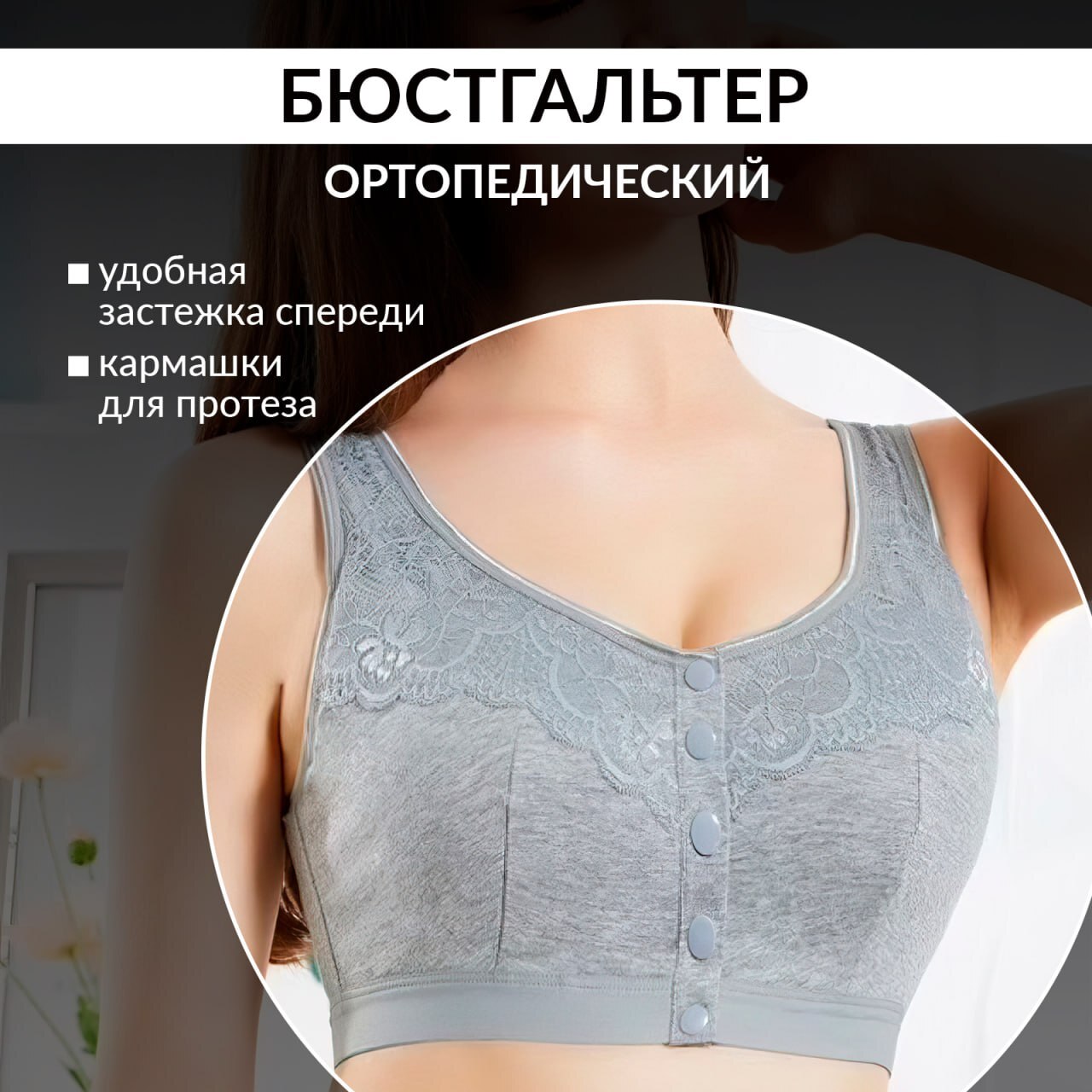Специальный ортопедический бюстгальтер создан с любовью и заботой, чтобы помочь женщинам вернуть себе уверенность после операции по удалению груди. С ортопедическим бюстгальтером для послеоперационного периода вы почувствуете истинный комфорт. Сделанный из мягкой и дышащей ткани, лифчик после мастэктомии обеспечивает поддержку и защиту, не раздражая деликатную кожу. Послеоперационный женский топ имеет вшитые с двух сторон глубокие карманы из 100% хлопка для фиксации протеза молочной железы. Бюстгальтер отлично подойдёт к любому виду протеза (силиконовый, текстильный, паролоновый). Карманы для протеза выполнены из натурального гипоаллергенного трикотажного хлопкового полотна, обеспечивая комфортное прилегание протеза к телу. Специальные кармашки внутри бюстгальтера позволяют надежно закрепить экзопротез и поддерживают естественный силуэт. Специальный топ после мастэктомии имеет удобную застёжку спереди. Вы будете чувствовать себя уверенно и комфортно в любой обстановке. Ортопедический бюстгальтер с кармашками не только помогает восстановить физическую гармонию, но и вдохновляет на обретение внутренней красоты и силы. Он – ваш верный спутник на пути к восстановлению и новому началу. Мы заботимся о вашем комфорте и здоровье, поэтому бюстгальтер после мастэктомии создан с применением самых передовых технологий и с учетом всех особенностей послеоперационного периода. Выберите наш ортопедический бюстгальтер после мастэктомии с кармашками для экзопротеза, и дарите себе любовь и заботу, которые вы заслуживаете.