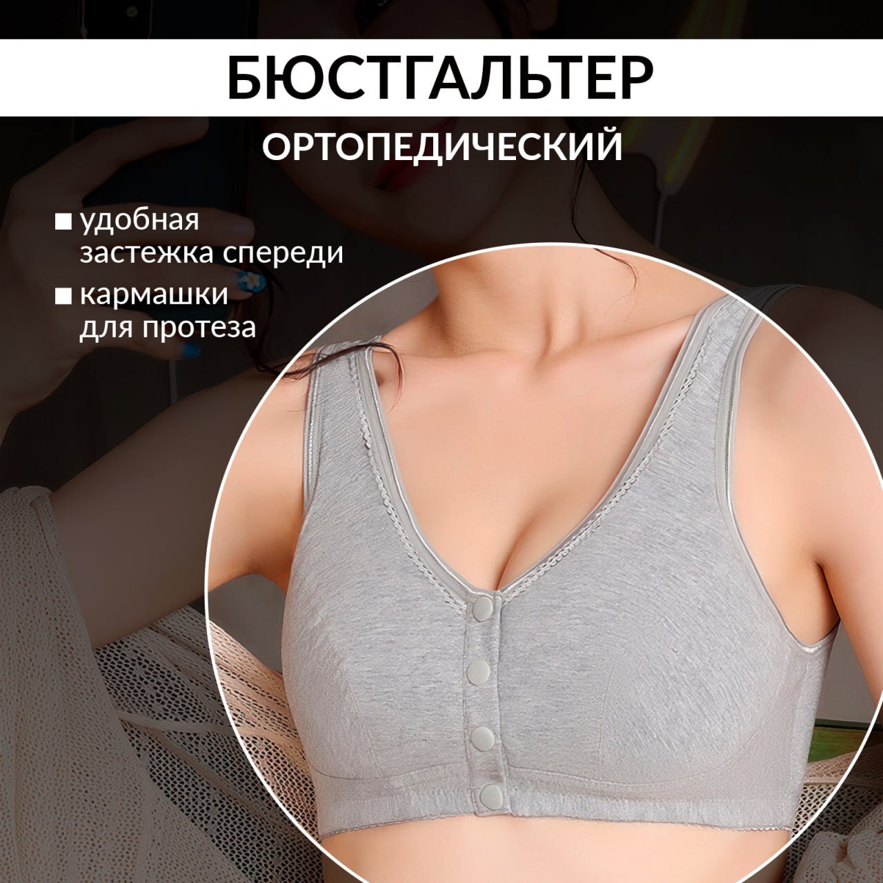 Ортопедический бюстгальтер после мастектомии создан с любовью и заботой, чтобы помочь женщинам вернуть себе уверенность после операции по удалению груди. С ортопедическим бюстгальтером ModelSi для послеоперационного периода вы почувствуете истинный комфорт. Сделанный из мягкой и дышащей ткани, лифчик после мастэктомии обеспечивает поддержку и защиту, не раздражая деликатную кожу. Послеоперационный женский топ имеет вшитые с двух сторон глубокие карманы из 100% хлопка для фиксации протеза молочной железы. Бюстгальтер отлично подойдёт к любому виду протеза (силиконовый, текстильный, паролоновый). Карманы для протеза выполнены из натурального гипоаллергенного трикотажного хлопкового полотна, обеспечивая комфортное прилегание протеза к телу. Специальные кармашки внутри бюстгальтера позволяют надежно закрепить экзопротез и поддерживают естественный силуэт. Специальный топ после мастэктомии имеет удобную застёжку спереди. Вы будете чувствовать себя уверенно и комфортно в любой обстановке. Ортопедический бюстгальтер с кармашками не только помогает восстановить физическую гармонию, но и вдохновляет на обретение внутренней красоты и силы. Он – ваш верный спутник на пути к восстановлению и новому началу. Мы заботимся о вашем комфорте и здоровье, поэтому бюстгальтер после мастэктомии создан с применением самых передовых технологий и с учетом всех особенностей послеоперационного периода. Выберите наш ортопедический бюстгальтер после мастэктомии с кармашками для экзопротеза, и дарите себе любовь и заботу, которые вы заслуживаете. Восстановите свою уверенность и красоту!