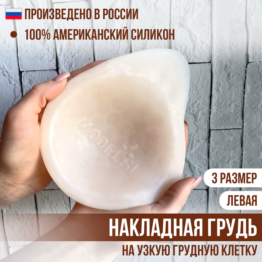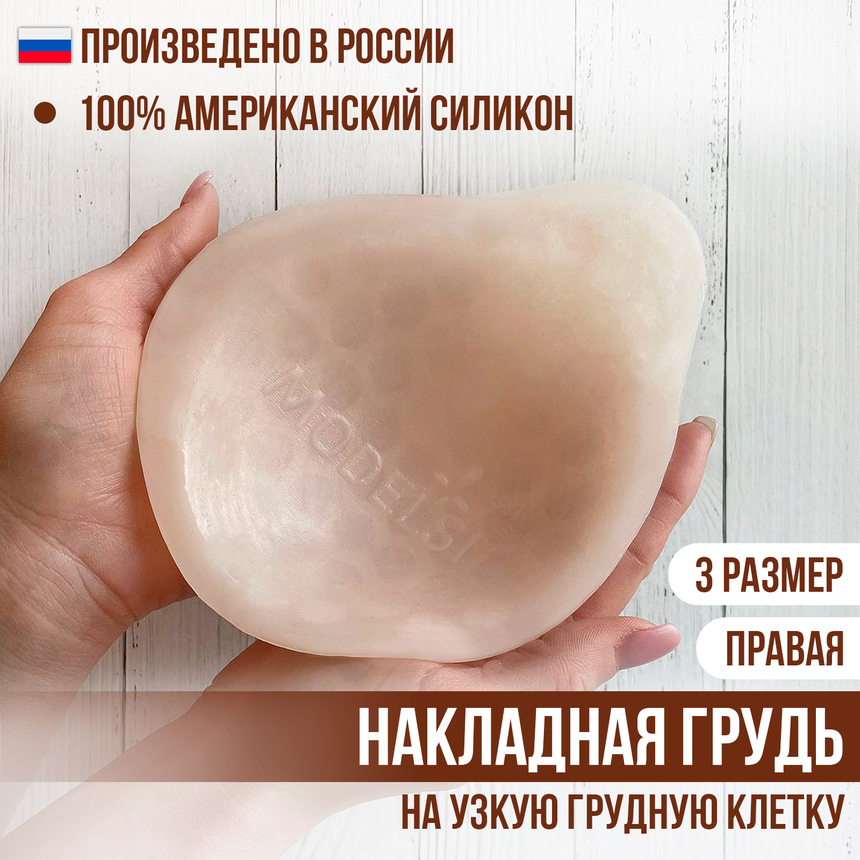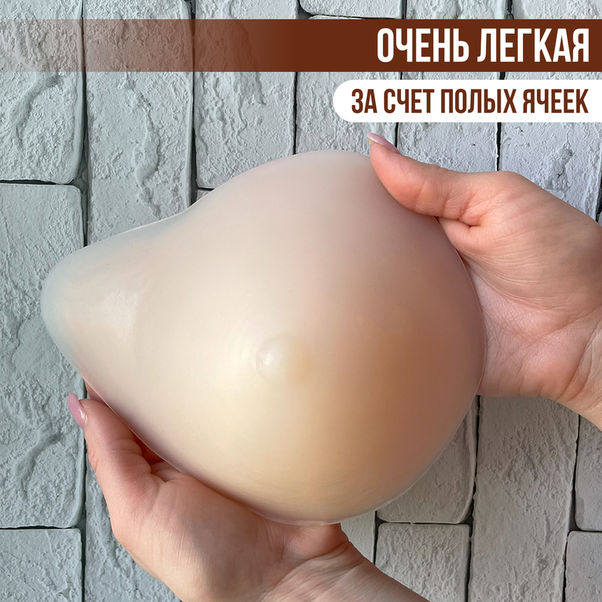 Уникальная разработка груди из силикона ModelSi - очень легкая и удобная в носке за счет полых ячеек силиконовая накладная грудь предназначена для женщин, перенесших удаление молочной железы или имеющих значительную ассиметрию. Форма протеза молочной железы обеспечивает естественный вид и подходит для вставки в любой бюстгальтер. Накладой экзопротез без покрытия пленкой изготовлен из высококачественного нетоксичного гипоаллергенного 100% американского силикона, плотность которого соответствует плотности настоящей груди. Мягкая, нежная структура протеза, быстро принимает температуру тела. Форма имеет естественный вид женской груди. Силиконовый протез имеет уникальную структуру, которая позволяет сохранять его форму без необходимости покрытия пленкой. Облегченная модель вкладыша в бюстгальтер после мастэктомии максимально комфортна при контакте с телом. Полые ячейки в виде сот облегчают протез, за счет этого кожа дышит. Поверхность накладной груди матовая, что обеспечивает стабильное положение протеза в чашке бюстгальтера. Силиконовое изделие не имеет запаха, наощупь повторяет ощущения от прикосновения к естественной женской груди. Накладной протез Моделси долговечен, износостоек и отличается высоким качеством. Размер накладного протеза соответствует 3-му размеру женской груди.