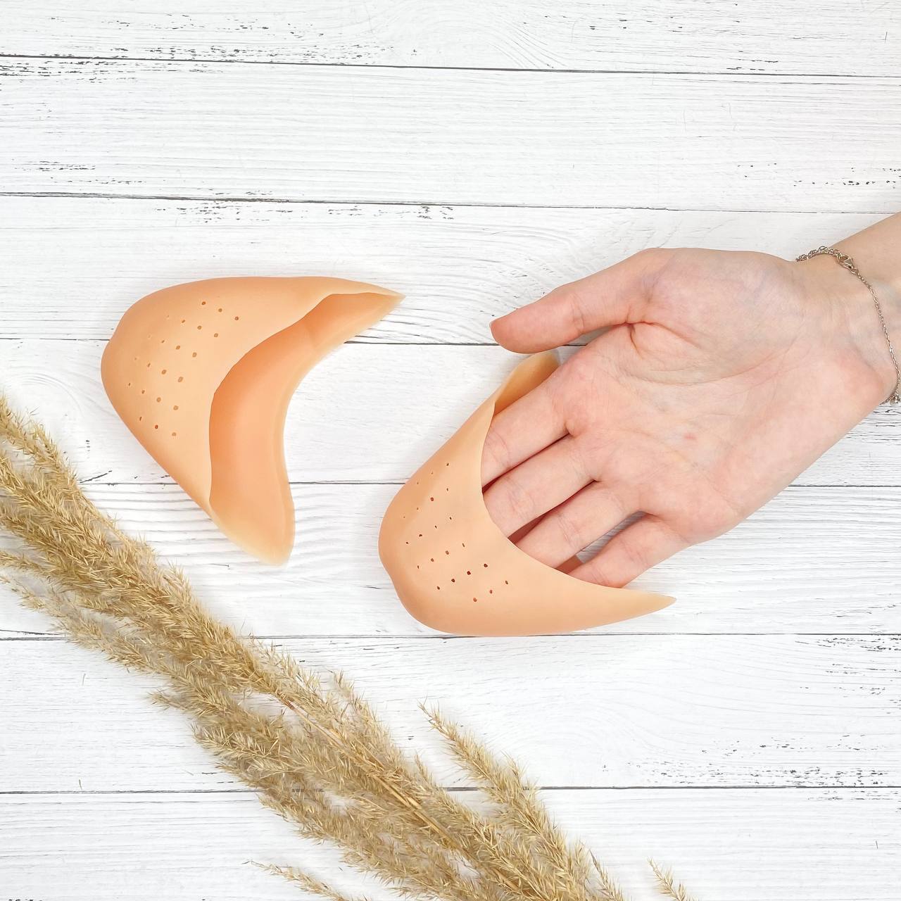 Вкладыши изготовлены из 100% силикона. Мягкие и эластичные, комфортно располагаются на пальцах ног. Вкладыши выполняют ряд важных функций: - защищают пальцы от травм, правильно распределяют нагрузку на стопу, а также помогают избежать мозолей и натоптышей. Подойдут для спортивной, танцевальной и обычной обуви. В комплект входит 1 пара вкладышей и мешочек для хранения.