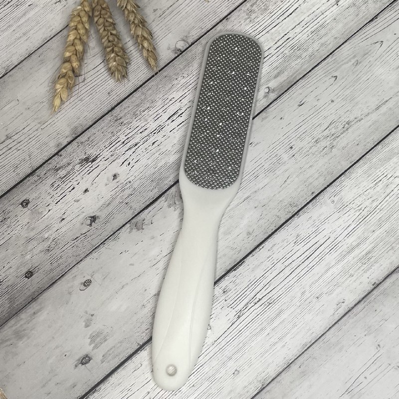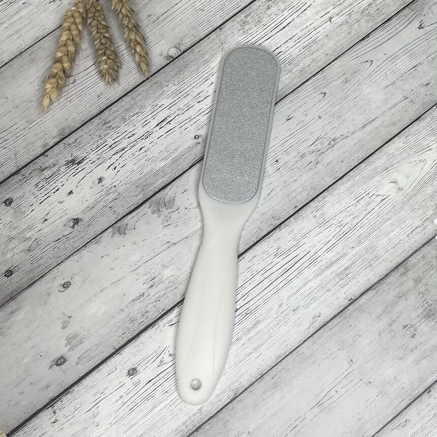 Двусторонняя педикюрная тёрка (рашпиль) с крупнозернистой и мелкозернистой поверхностью для мягкого и основательного удаления ороговевшей кожи. Нескользящая ручка и удобная форма позволяют легко удалять мозоли в труднодоступных местах.