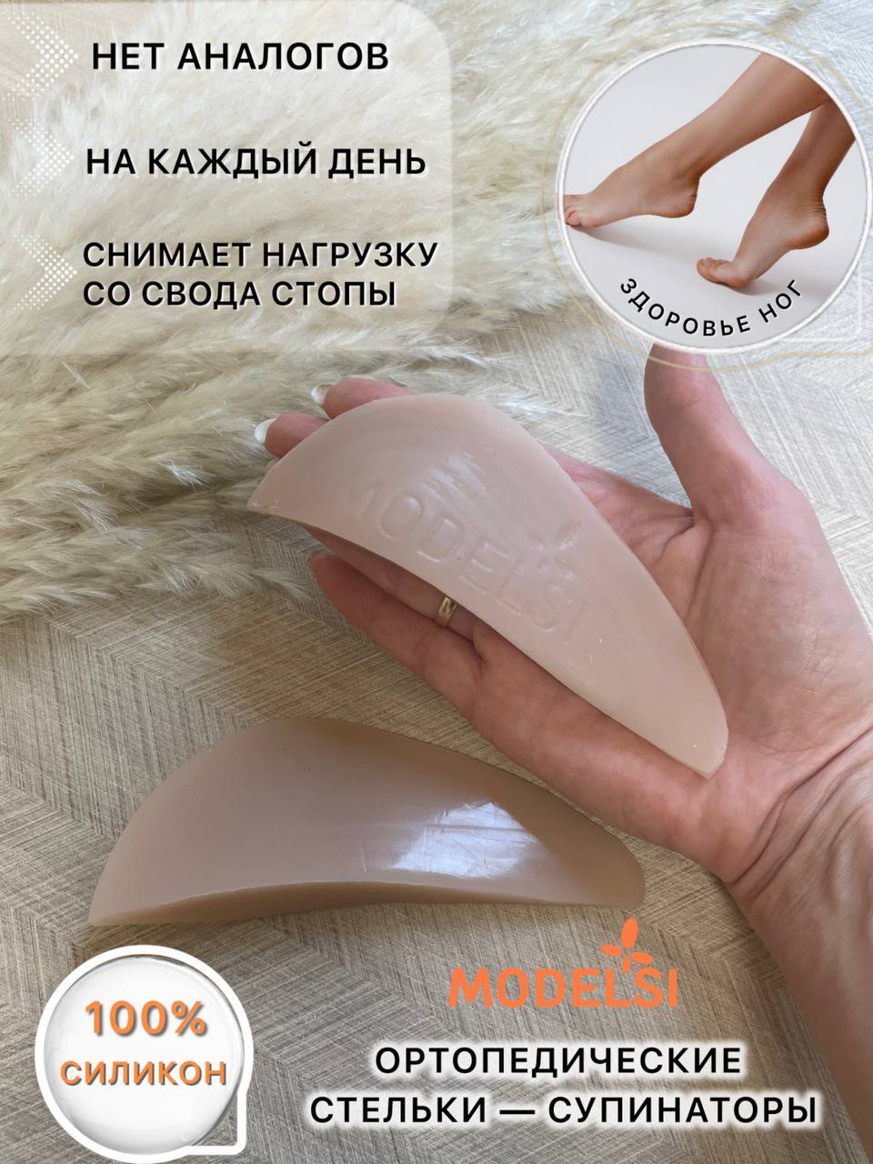 Ортопедические стельки — супинаторы под подъем стопы. Хорошо амортизирующая стелька, изготовлена из мягкого, приятного для кожи 100% медицинского силикона. Многоразовые, подходят для любой обуви. Прикладываются к голой стопе и фиксируются сверху носком или обувью.
