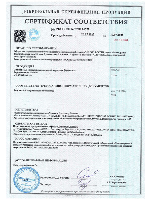 Мы являемся изготовителем силиконовых изделий с 2017 года. Производим из медицинского силикона, который имеет биопробы к человеческой коже и является безопасным для контакта с кожей. Товар имеет сертификат качества.